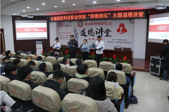 学校积极构建“双色”融合的校园文化。依托“全国国防教育特色校”优势,校内建有国防教育体验馆、大型军品展示等军工文化育人场馆资源,打造以国防教育特色为代表的“绿色”校园文化;利用皖西地区红色资源富集的优势,拓展爱国主义教育基地,开展“行走的思政课”,打造以革命传统教育为代表的“红色”校园文化。一年一度的田径运动会、迎新晚会、“我们的节日”和道德讲堂、“五四”青歌赛等活动,已经成为深受学生喜爱的校园文化品牌,30多个学生社团和文体俱乐部,极大丰富了同学们的第二课堂,为尽情展示青春风采,提供了广阔的华美舞台。