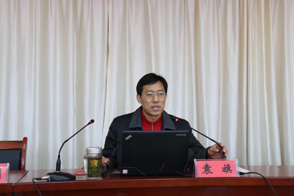 本网讯  按照学校党委工作安排,12月20日下午,校“党的十九大精神”宣讲团副团长、校党委委员、宣传部部长、思政部主任袁旗于图书馆报告厅为全校教职工作专题报告。报告会由校党委副书记、纪委书记朱德明主持,校领导冯伦久、丁守宝出席报告会,全体教职工聆听了报告。