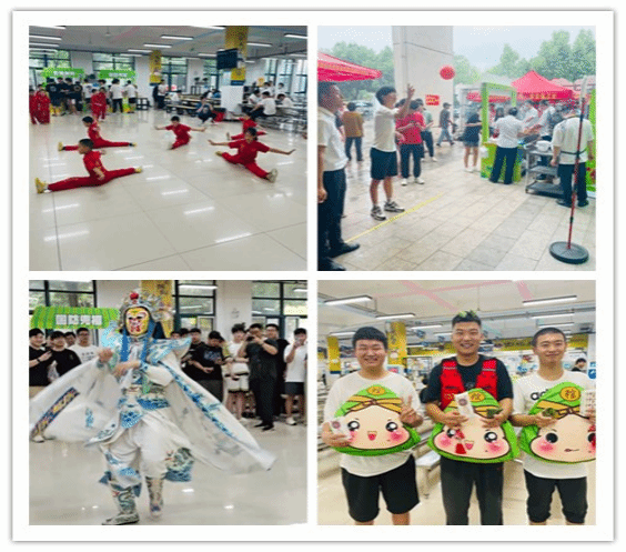 伴随着美食还有各种好玩的游戏和互动活动,火爆网络的青蛙玩偶在餐厅里活蹦乱跳,和同学们互动猜拳;一群稚气未脱的孩子们在教练的带领下表演了中国传统武术;紧张又刺激的指压板跳绳和投篮游戏,激活了同学们的运动细胞;一声锣鼓把同学们的注意力都吸引过来了,原来是精彩的川剧变脸!演员的精彩表演赢得在场同学的阵阵喝彩。每位来到餐厅的同学还都获得了一张幸运刮刮卡,奖品从拉杆箱、乳胶枕到水杯、酸奶,凡是参与活动的同学都不会空手而归。美食节活动临近端午节,餐厅还开展了师生包粽子活动,同学们积极参与,自己动手去制作,餐厅将同学们包好的粽子煮好后又分发给大家,每个人都享受到自己的劳动成果。同学们纷纷表示,学校举办这样的美食节,有美食、有表演、有游戏互动,真是太解压了,真希望学校能天天开展这样的活动。