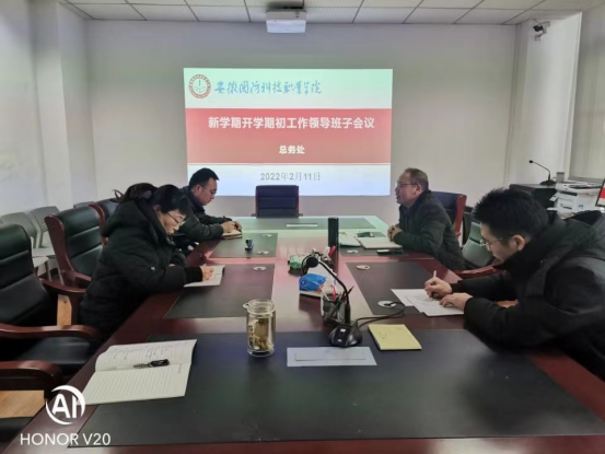 2月11日,总务处在秉心楼十楼招标会议室,召开新学期开学期初工作领导班子会议,共商新学期各项工作。会议由总务处处长余嗣俊主持。大家就新学期工作的职责和目标,如何调动干部职工的责任心和使命感,充分做好部门经费预算、部门重点工作、安全、后勤、疫情防控等方面进行了深入交流和细致研讨。会议明确以建设“学习型、平安型、高效型、创新型、廉洁型”组织作为部门努力方向,全面做好师生服务工作。