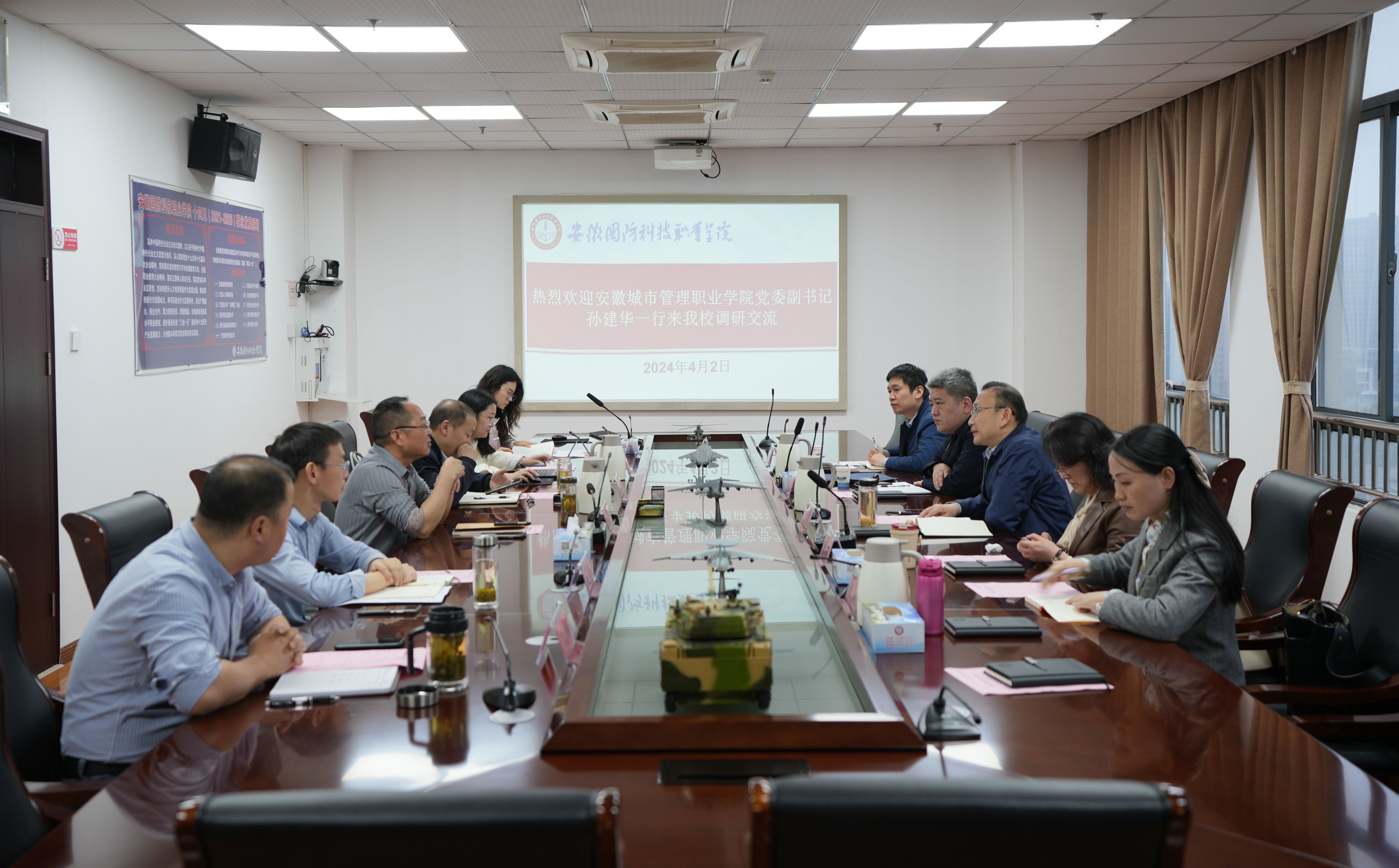4月2日上午,安徽城市管理职业学院党委副书记孙建华一行来beat365就绩效工资改革及部门综合考核工作开展调研交流。校党委副书记冯伦久及相关部门负责人出席会议,会议由冯伦久主持。