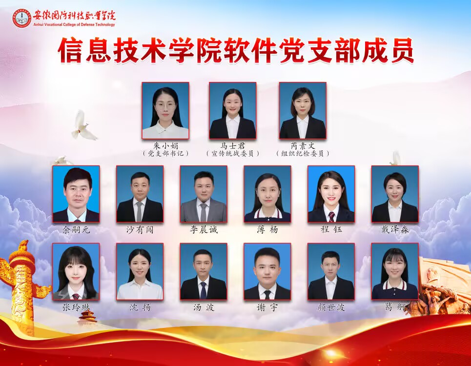 信息技术学院软件党支部(党支部书记:朱小娟)现有党员15人,其中高级职称6人。信息技术学院软件党支部聚焦“政治功能强”“支部班子强”“党员队伍强”“发挥作用强”,积极打造“党建+”品牌建设,深化党建与学科建设、人才培养、社会服务融合,深挖课程思政,践行实践育人;发起“少儿编程一小时”公益项目,践行教育服务;打造数字化乡村信息化平台、承接横向课堂,深入企业锻炼,践行科技赋能乡村振兴、企业发展;与社区开展党建联建,助推社区治理提质增效。软件党支部2022年顺利通过教育部第二批全国党建工作样板支部验收和安徽省首批党建工作样板支部验收,2023年获批首批安徽省高校“五星”级党支部。